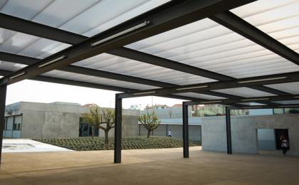 As cobertura são diversas respondendo à necessidade de cada espaço, cobrindo os corpos E, F, G e H, bem como, os recreios entre os diferentes corpos e o campo de jogos. Composta por distintos revestimentos, sob a forma de chapa simples, de chapa dupla intercalada com lã de rocha, por placas alveolares e de cobertura tipo deck. A nível estrutural elaborou-se o campo de jogos, o piso técnico de corpo E, bem como, os passadiços de ligação entre diferentes corpos. Foram aplicadas lajes mistas e gradil.